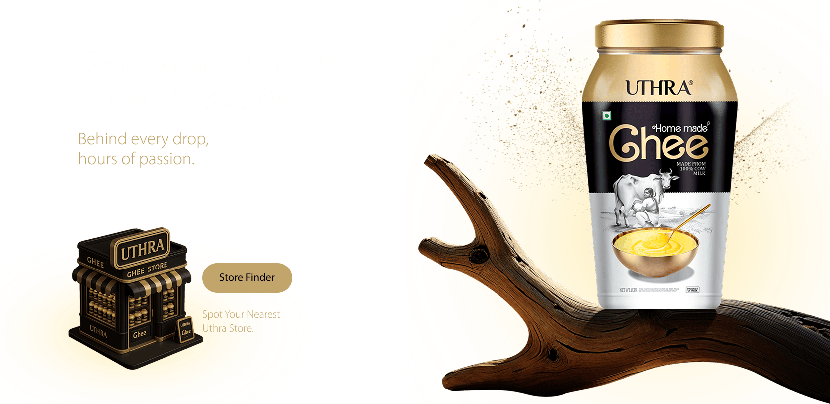 - This process brings out Uthra Ghee’s unmatched aroma, golden hue, and grainy texture —just like homemade ghee