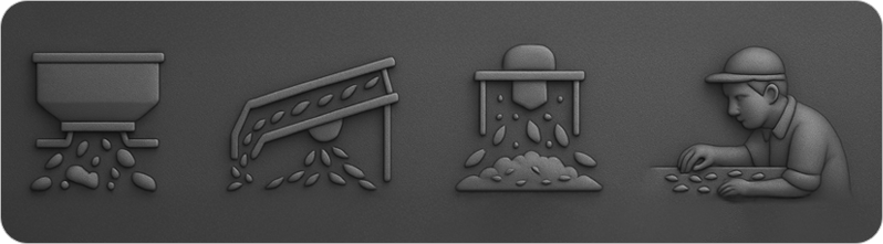 - Manual Hand Picking (Final Golden Stage): Because we trust nothing more than the careful eyes and hands of our dedicated team.